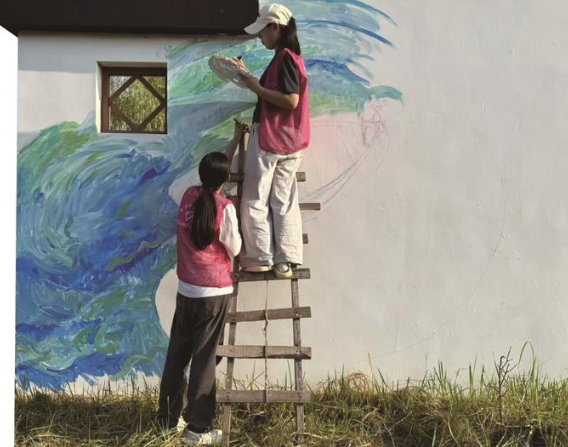 江苏商贸职业学院10余名师生在如东渔村 7天完成180平方米主题墙绘——最好青春